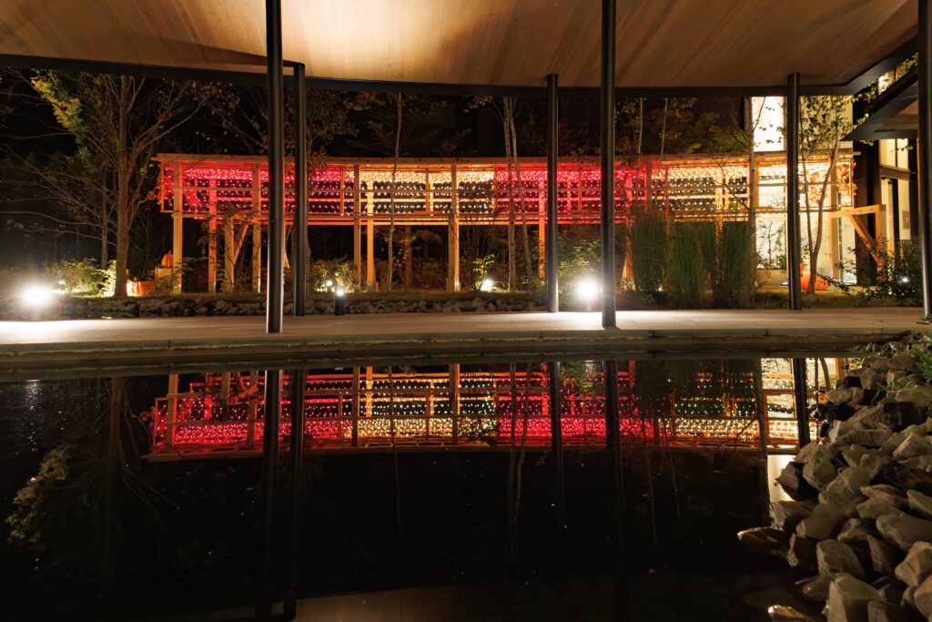 中庭には期間限定の「ハロウィン回廊」が出現。夜のライトアップではより幻想的な雰囲気を醸し出します。また、フォレストガーデンではフランスのシャンパーニュ ヴーヴ・クリコの世界観があふれる特別ディスプレイを開催中。焚き火を眺めながらシャンパンで宵のひとときを過ごしては。