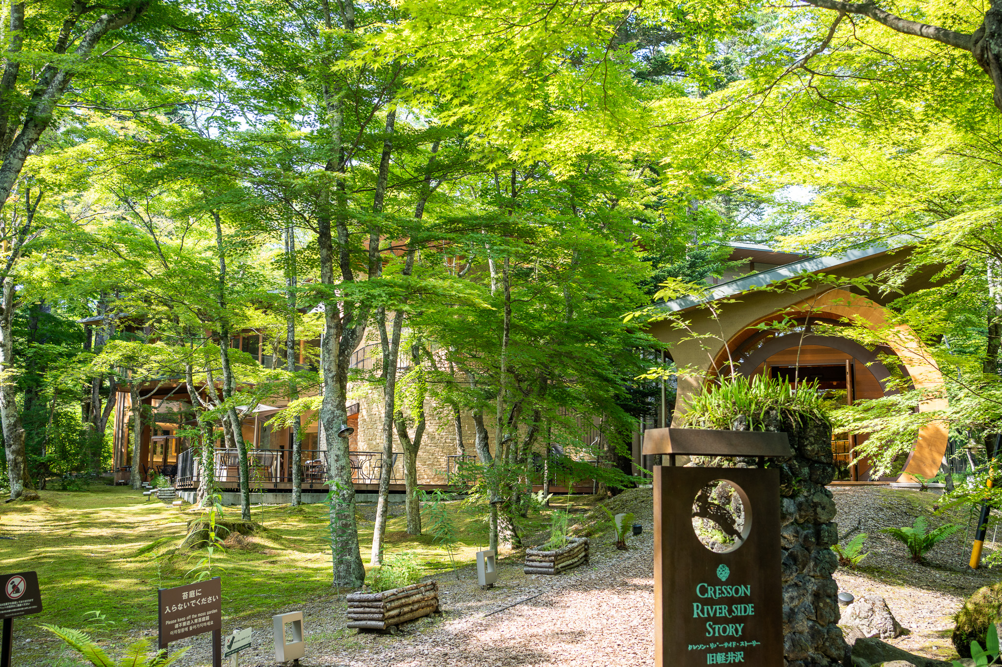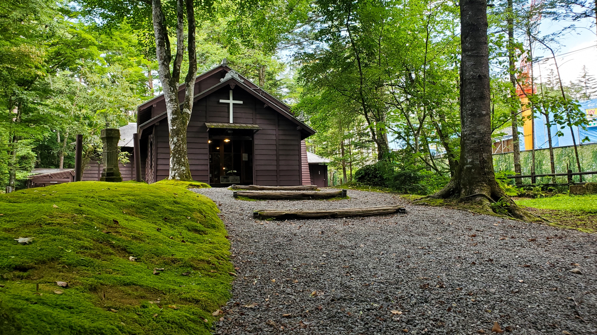 從輕井澤站北口乘坐草輕交通巴士,在“舊輕井澤”巴士站下車後,徒步約10分鐘